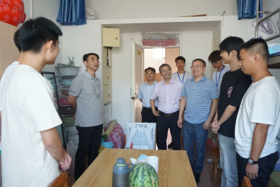 为了解新生入学适应情况,帮助新生更好地融入大学生活,让2024级新生感受到beat365唯一官网的温暖与关怀,9月6日下午,beat365唯一官网党委书记赵宇剑、院长许松涛、党委副书记周梓哲在学生科、思政科负责人陪同下,走访了27栋、28栋等学生宿舍,看望慰问2024级新生。