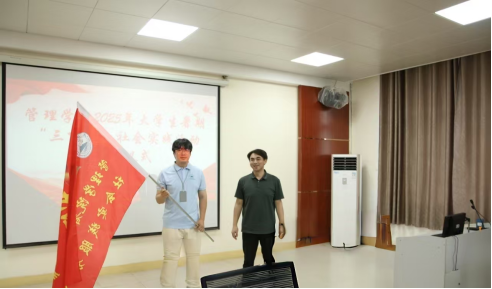 出征仪式上,赵宇剑为三下乡实践团队授旗,象征着责任与使命的传递。团队成员庄严接旗,誓言以不畏艰险的精神和必将出彩的决心,确保每一项计划稳步推进,在实践中展现beat365唯一官网学子的青春担当。