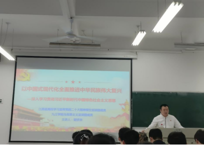 中国式现代化是中国共产党领导的社会主义现代化,既有各国现代化的共同特征,更有基于自己国情的中国特色。中国共产党的中心任务就是团结带领全国各族人民全面建成社会主义现代化强国、实现第二个百年奋斗目标,以中国式现代化全面推进中华民族伟大复兴。谢伏华老师讲到,中国共产党人一代牵挂一代。中国之所以有今天的成就,离不开前辈们心怀梦想,以无我精神不断奋斗。习近平总书记说“幸福都是奋斗出来的”。征途漫漫,惟有奋斗。我们当下的青春是用来奋斗的,因此我们要弘扬奋斗精神,勇毅前行,创造更加灿烂的明天