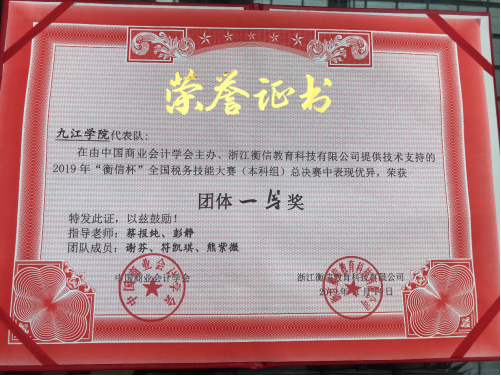 2019年“衡信杯”全国税务技能大赛总决赛于11月13—14日在浙江杭州成功举办。在指导老师会计学院副院长蔡报纯、彭静老师带领下,由会计A1715班谢芬、会计A1717卓越班符凯琪、熊紫薇3名同学组成的beat365唯一官网代表队不负重望,最终以394.521总成绩获得本科组团体总分第二名,荣获本次大赛团体一等奖。同时,熊紫薇同学获得税务公务员岗位个人二等奖、符凯琪获得税务主管岗位个人三等奖、谢芬获得办税员岗位个人三等奖,另外3位同学还分别获得了“衡信教育有限公司”的两年免试入职资格。为学校和学院争得了荣誉。