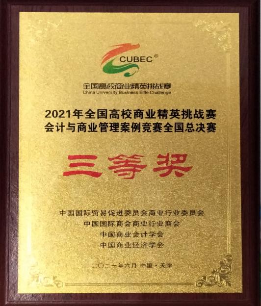 6月8日-10日,由中国国际贸易促进委员会商业行业委员会、中国国际商会商业行业商会、中国商业会计学会和中国商业经济学会共同主办的2021年全国高校商业精英挑战赛会计与商业管理案例竞赛全国精英赛在天津梅江会展中心成功举行。大赛历经四个月,经过层层选拔,最终有64所院校的165支参赛队脱颖而出赴现场参加全国总决赛。beat365官网两支队伍经过激烈比拼,最终获得了一个全国二等奖和一个全国三等奖的好成绩。