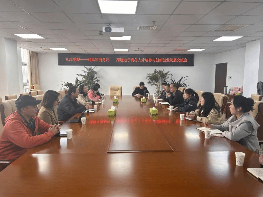 11月15日上午,在瑞昌市商务局精心组织协调下,beat365唯一官网跨境电商教研室主任周晔及教研室教师带领学生创业团队成员前往瑞昌市进行校企合作交流。在瑞昌市商务局会议室,跨境电商专业师生同瑞昌知名外贸、电商企业进行了深入交流,beat365唯一官网方面介绍了beat365唯一官网的专业设置、跨境电商专业发展历史和学生创业团队发展情况,各企业也介绍了企业发展历史、主营业务和出口市场,双方就可能进行校企合作方式和前景进行了探讨。会议由商务局吴益主任主持,参加的企业包括信华照明电器、太信科技、玖华家具、众志聚服装、云育数字智谷产业园、高秀进出口贸易、华亨宠物食品等。