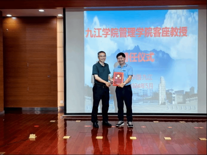 聘任仪式由副院长郑孝庭主持。郑副院长首先对邱教授加盟学院表示热烈欢迎,并简要介绍了邱伏生博士的社会荣誉及丰硕的实践成果等情况,然后请院长许松涛为其颁发客座教授聘书。