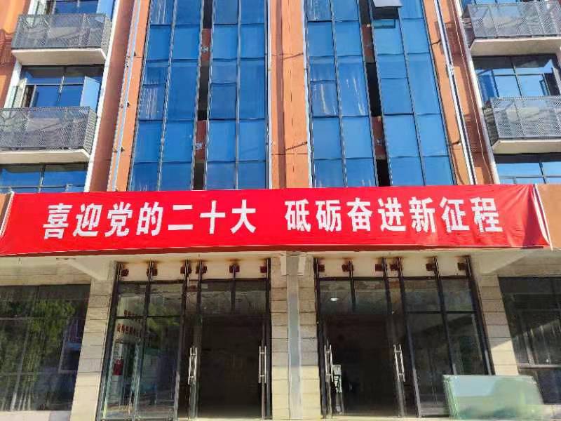 (beat365唯一官网立信楼大门悬挂喜迎党的二十大横幅)