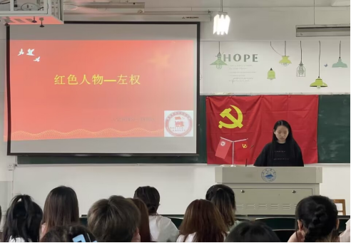 活动中杨嘉欣同学向大家介绍了红色人物左权的事迹。左权,抗战时期曾任八路军副参谋长、八路军前方总指挥部参谋长。长征时期毛泽东称赞左权是“神枪手”,朱德称赞是“模范军人”,是“钢铁般坚强、狮虎般勇猛的优秀将领”。他在驻军中严格执行“三大纪律、八项注意”,广泛开展拥政爱民活动,与人民群众建立了深厚的阶级友谊。