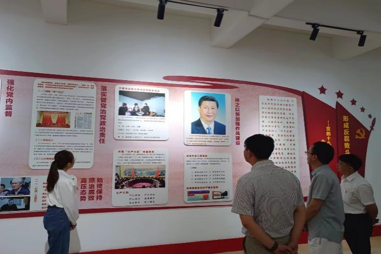 在教育基地内,全体成员跟随讲解员的引导和讲解,先后观看学习了党的纪律建设历史、党的十八大以来全面从严治党的成就、党的十九大以来全面从严治党的工作、党的二十大关于全面从严治党的新要求、新时代江西全面从严治党新形势新任务新要求和纪律教育区等展区内容。展区内容主题鲜明、图文并茂,事例丰富,步步见廉景、处处闻廉语、时时受廉教,参观人员触动强、感悟多、收获大。
