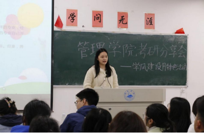 来自市场营销A1911班已被湖南农业大学拟录取的尹慧同学,从考研各科的复习方法、考研信心的树立、考研计划、作息时间安排等方面进行讲述,向同学们分析了面试中的相关技巧,极大的提高了在座学生的考研积极性,进一步加强了同学们对考研信息的了解。