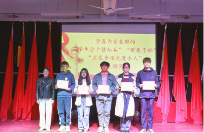 学生科副科长李春为学生会十佳标兵、优秀干部和卫生专项先进个人代表颁奖