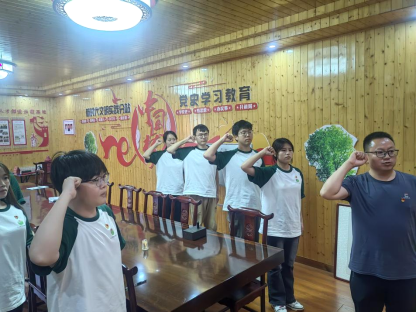 “当人大代表不能来虚的,得实实在在为人民做点事情。”这是实践队员在访谈欧阳国松时他说的最多的一句话。作为九江市第十六届人大代表的欧阳国松是庐山市海会镇光明村人,现任九江忆恋茶业专业合作社党支部书记、海庐茶博园总经理。在与欧阳国松的访谈中得知,他刻苦钻研茶叶种植、加工技术,通过“党支部+合作社+农户”模式,带领村民探索“茶旅融合”发展新路子,实现共同致富,获得村民的一致点赞,实践队员对此深受感染,深切感受到一名党支部书记、一名人大代表为民服务的本色。活动中,欧阳国松带领实践队员重温入党誓词,叩问初心、守护初心,不断坚守理想、担当使命,做到初心如磐、使命在肩。