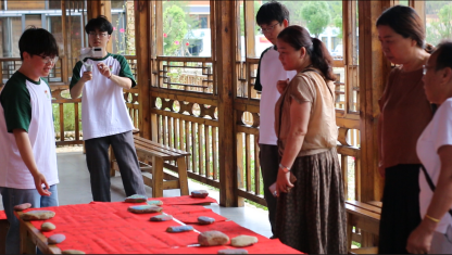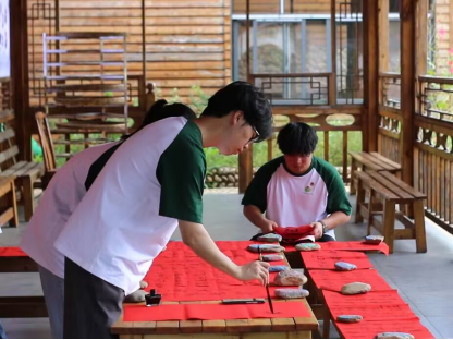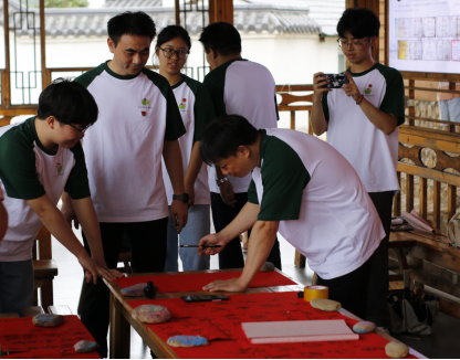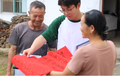 翰墨飘香书党史,红色书法润人心。为推进红色文化走进乡村,助力乡村文化振兴,实践队在光明村开展红色书法展,实践队员们亲自书写经典红色诗歌,一同感受书法魅力,体悟红色文化,传承红色基因。翰墨飘香间,一张张红色书法在墨香茶廊中展现,吸引大批群众到此观光游览。活动后,实践队员走进光明村落,入户赠送红色书法作品,同村民共同体悟红色文化,赓续红色血脉,为乡村文化振兴贡献青春力量。