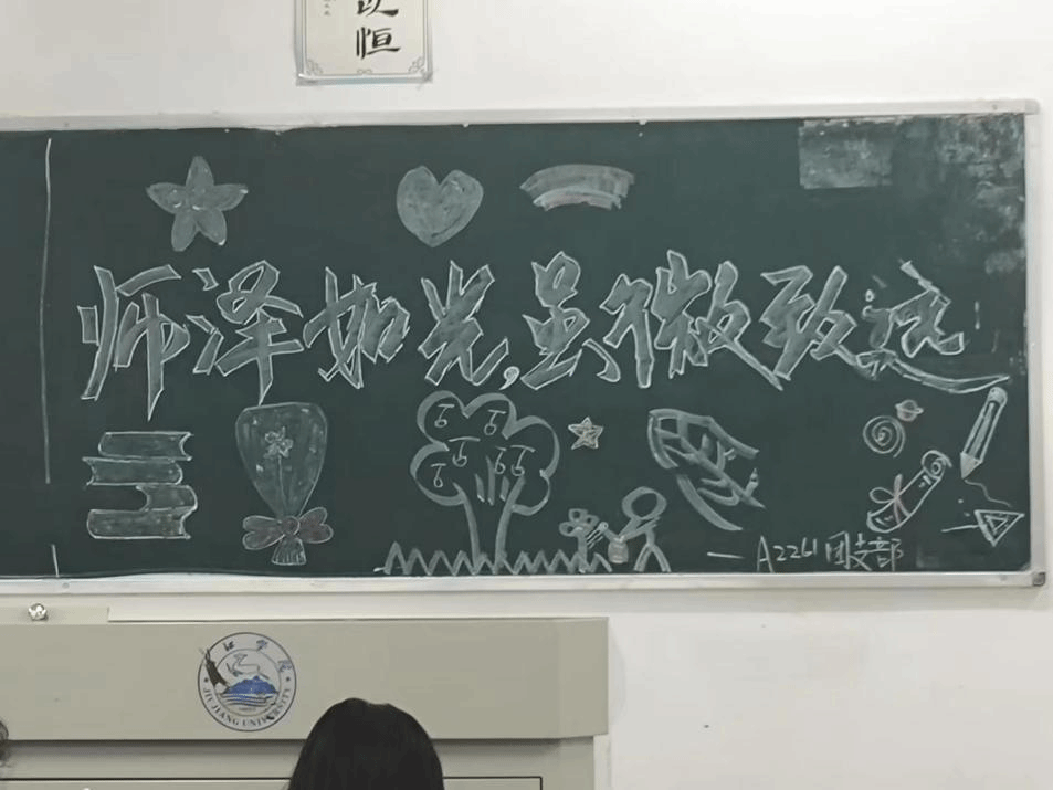 各班级以庆祝教师节为主题,绘制了精美的黑板报,板报内容生动丰富,情感真挚,构思巧妙精致,都表达着同学们对老师深深的感激之情,是学院团员青年送给老师最好的礼物。