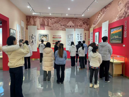在第一专题厅,毛主席珍贵文献资料前,泛黄的纸张上密密麻麻的批注与手稿,无声诉说着伟人对革命道路的深邃思考,让同学们深刻体会到领袖在时代浪潮中高瞻远瞩的战略眼光;第二专题厅内,一幅幅英雄人物的影像、一段段震撼人心的事迹,激励着同学们以英雄为榜样,在新时代的经济建设中勇挑重担;第三专题厅里,通过展示中华文明传承与创新的脉络,启发同学们思考企业发展与文化传承的深层联系。