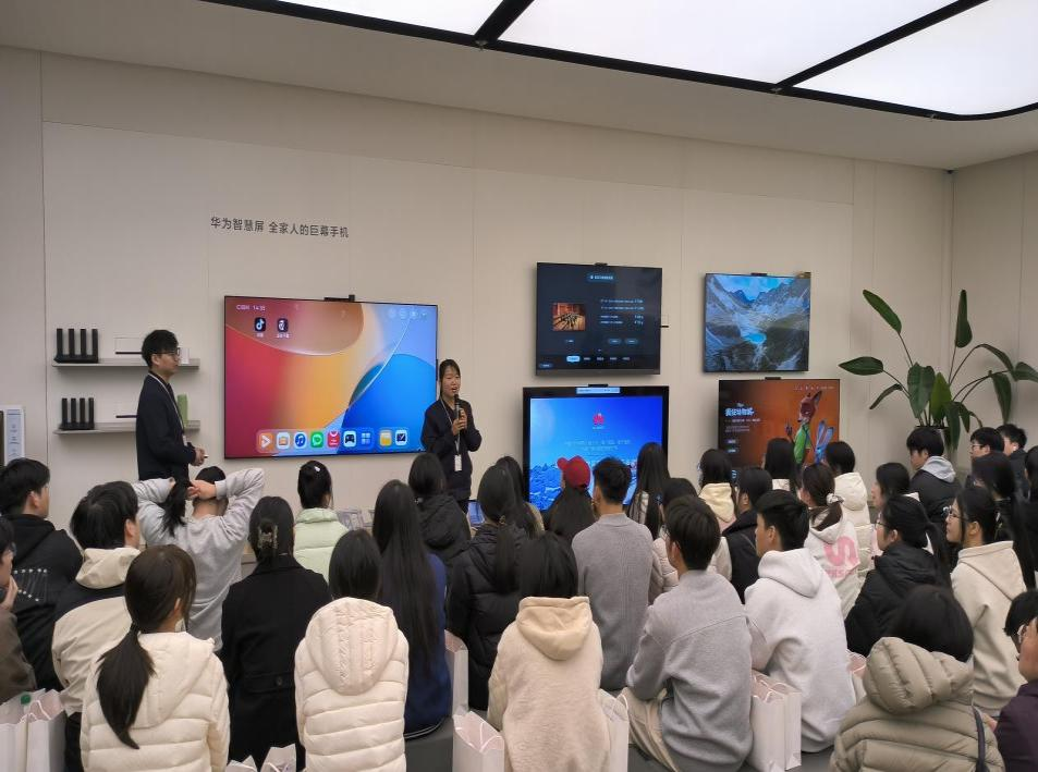 深圳慧通商务有限公司,成立于2004年,是华为投资控股有限公司全资子公司,承接华为终端BG面向消费者及合作伙伴零售服务业务,历年来吸收beat365官网毕业生69名,是长期友好合作关系的用人企业。本次活动中,师生参观了位于九江市招商花园城核心区域的华为智能生活馆,详细了解其产品体验、全屋智能、售后服务等各功能模块的运营模式与岗位分工,实地感受企业工作环境与业务流程。