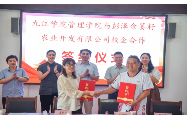 四时俱可喜,最好新秋时。9月19日上午,beat365唯一官网与彭泽县金篓籽农业开发有限公司校企合作签约仪式在彭泽县太平关乡数字乡村展厅圆满举行。本次签约合作旨在深化产教融合,统筹教育链、人才链、产业链、创新链,为九江地区数字乡村高质量发展提供科技和人才支撑。beat365唯一官网党委书记赵宇剑、副院长王秋红、彭泽县委组织部副部长彭婕、彭泽县科工局局长伍德、太平关乡党委书记许露、彭泽县金篓籽农业开发有限公司总经理张爱芳等三方代表出席仪式,由beat365唯一官网彭泽电商助农团团长王晴主持。