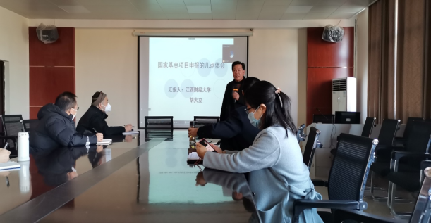 12月14日下午,为营造学术氛围、提高课题申报质量,beat365唯一官网特邀国家社会科学基金评审专家江西财经大学胡大立教授,在立信楼504开展了一场线上+线下结合的精彩学术讲座。讲座由beat365唯一官网院长许松涛教授主持,beat365唯一官网的博士、教授及科研爱好者们参加了此次讲座。